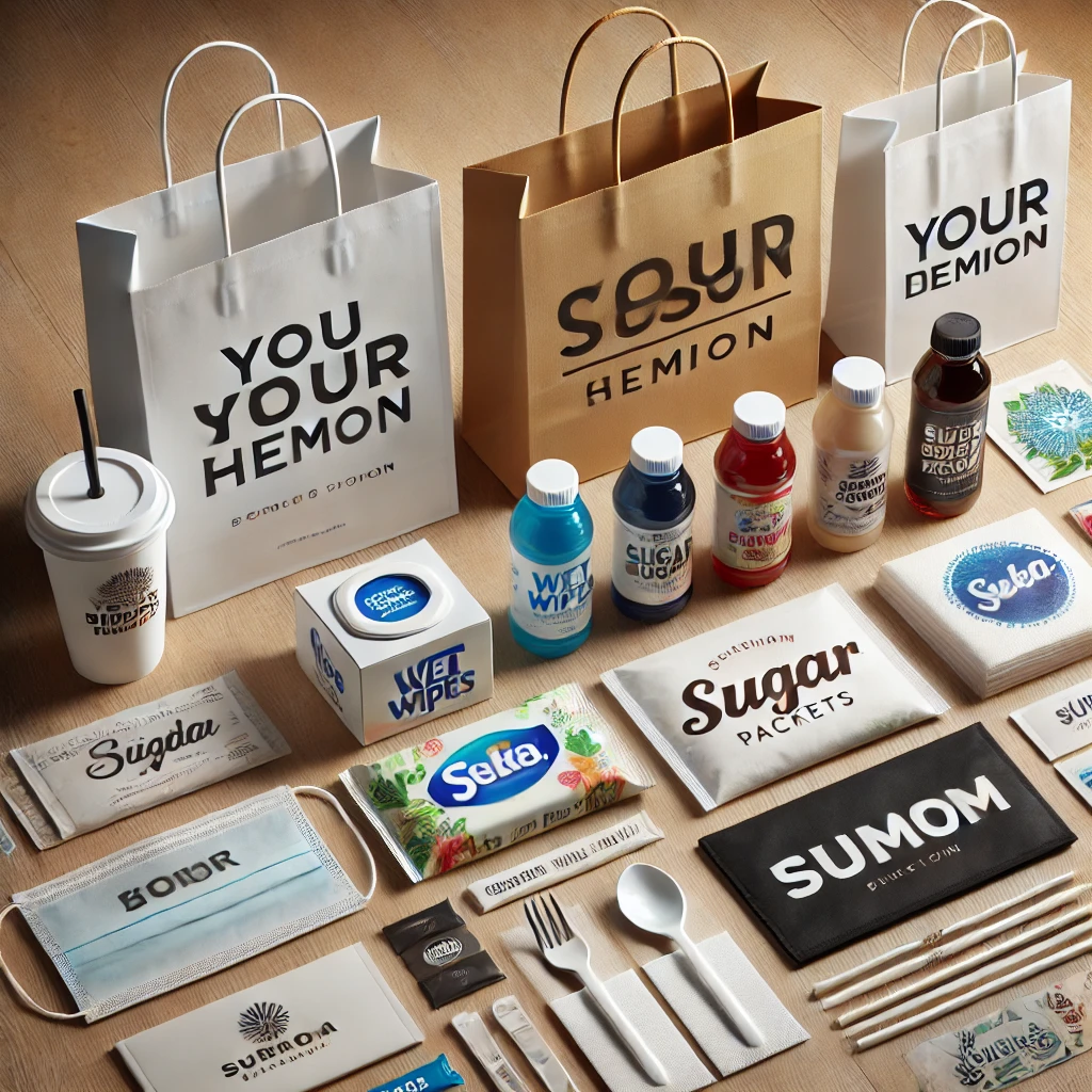 Markanızı öne çıkaran baskılı ürünlerimizle firmanızın tanıtımına katkı sağlıyoruz. Islak mendil, şeker, peçete, pipet ve çanta gibi çeşitli ürünlere özel baskılar yaparak, işletmenize profesyonel ve prestijli bir dokunuş katıyoruz.